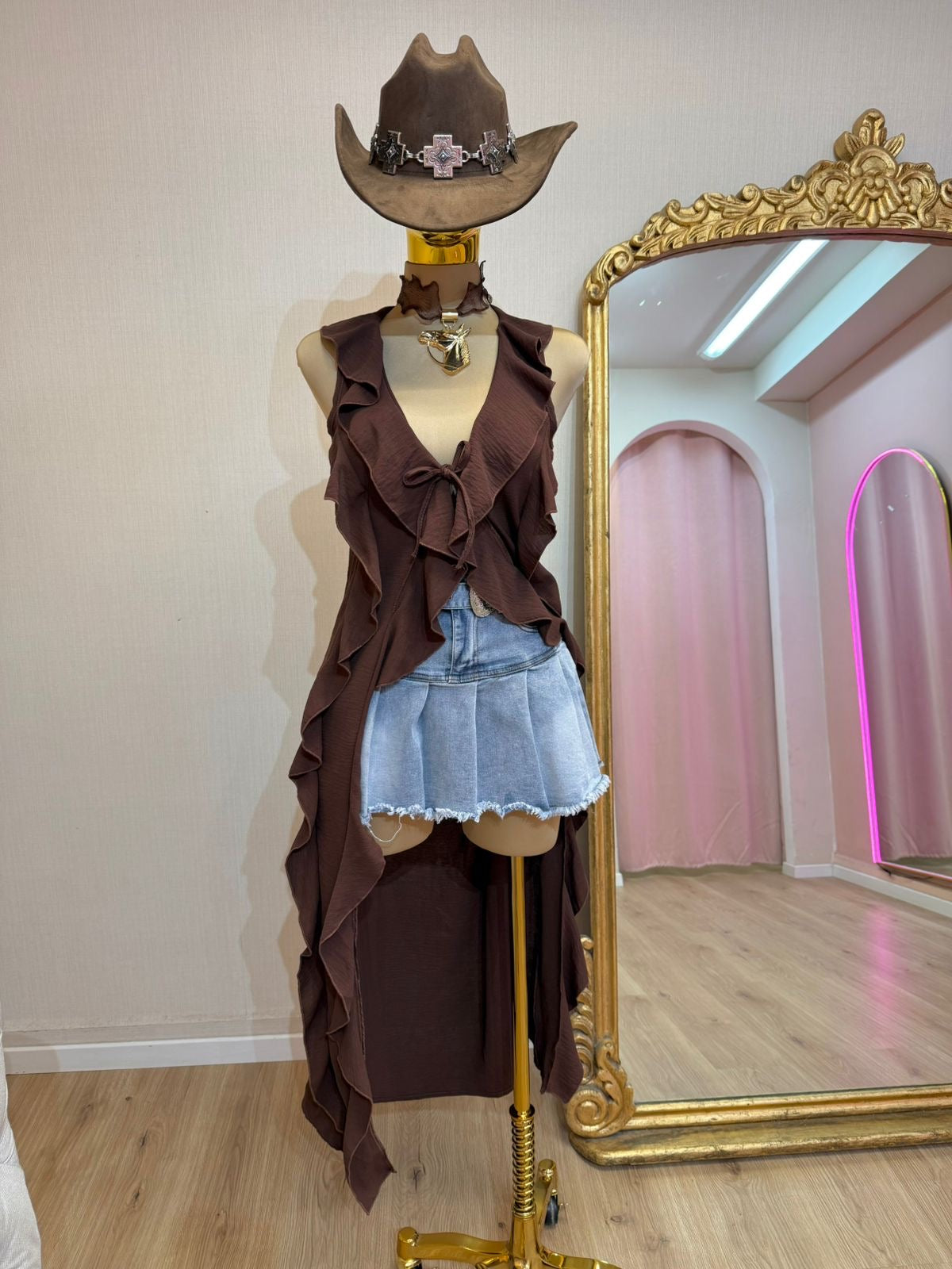 MAXIBLUSA CAFÉ RUFFLES SIN MANGA