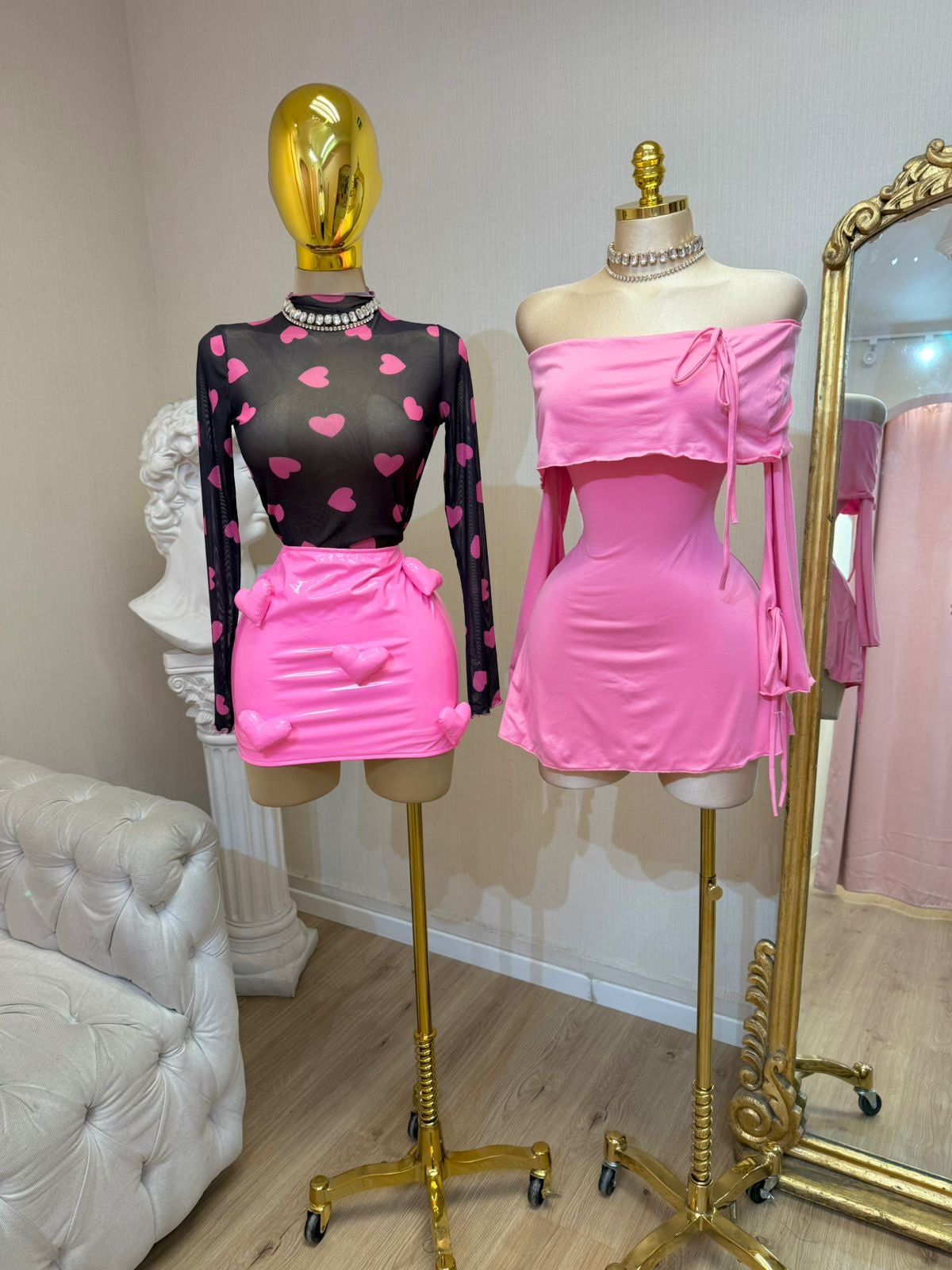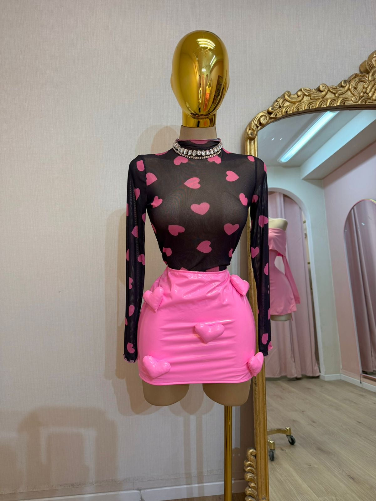 BLUSA MESH MANGA LARGA NEGRA CORAZONES ROSA